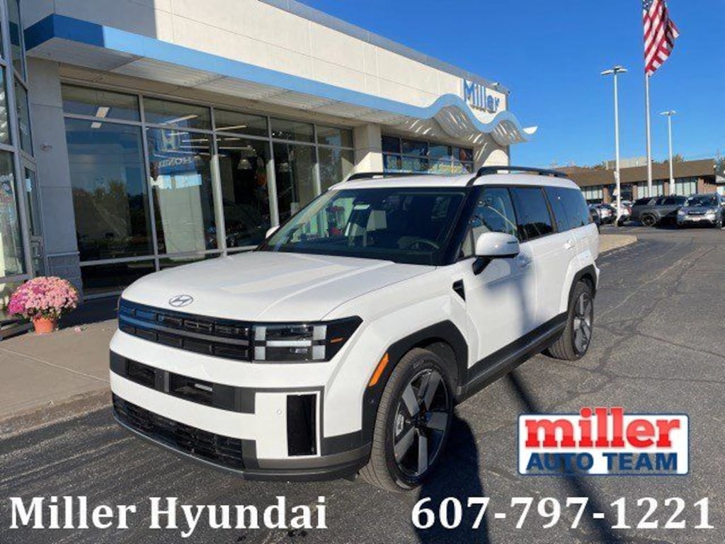 Serenity White 2026 Hyundai Santa Fe Limited AWD 8-Speed Automatic with SHIFTRONIC 2.5L I4 AWD, Black Leather.